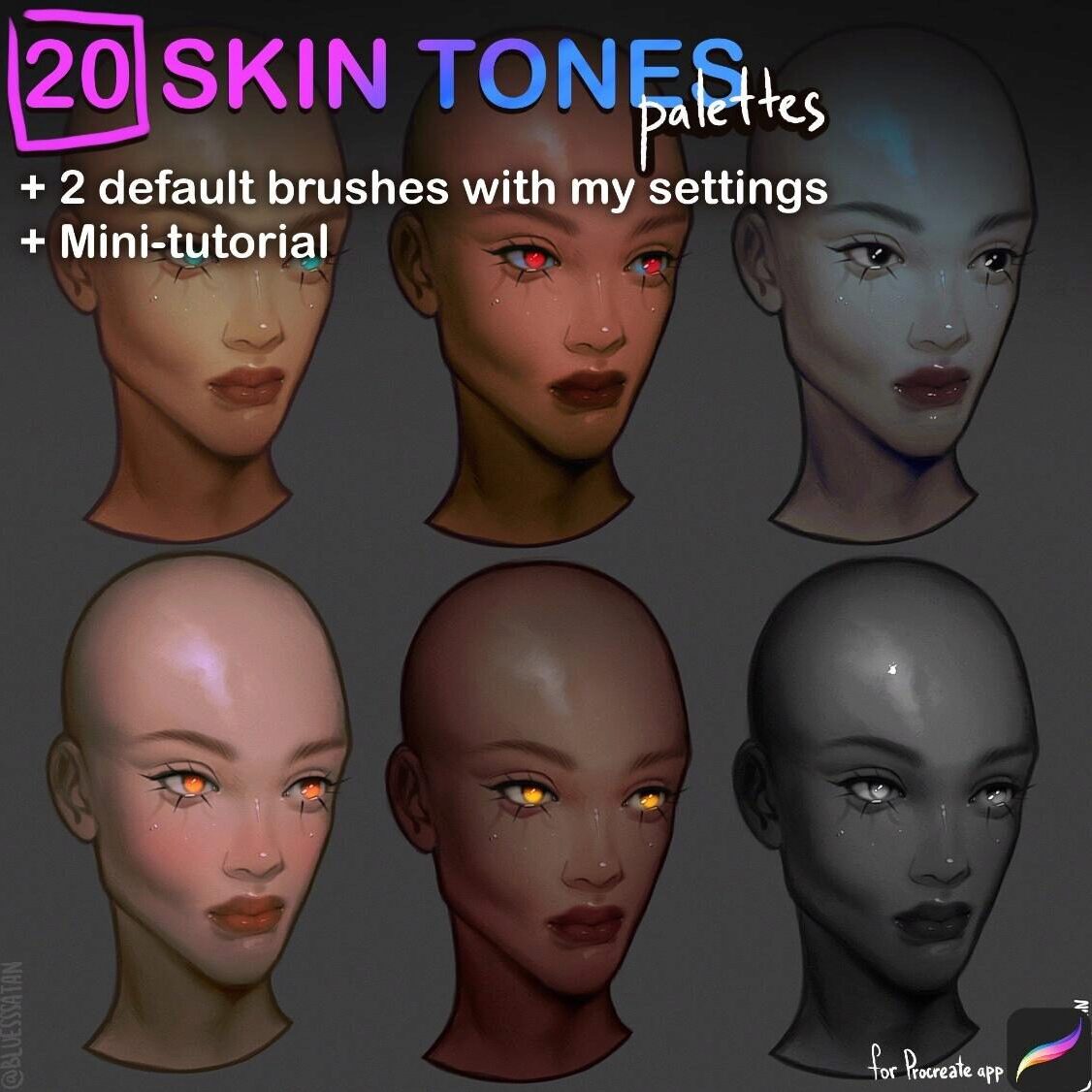 Юлия Разумова «Палитры кожи (20 оттенков) + 2 кисти для Procreate + мини-туториал»