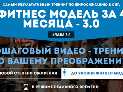 Я запускаю свой культовый проект ФМ4М [Фитнес модель за 4 месяца]. Если ты ждал СИГНАЛ от вселенной, точку опоры, точку отсчета, подходящего времени, благоприятных условий, чтобы все изменить… Вот Он Сигнал: Пиу-Пиу! Сигнализирую тебе прямо в антенну. Других сигналов в этом году не не будет! ФМ4М -
