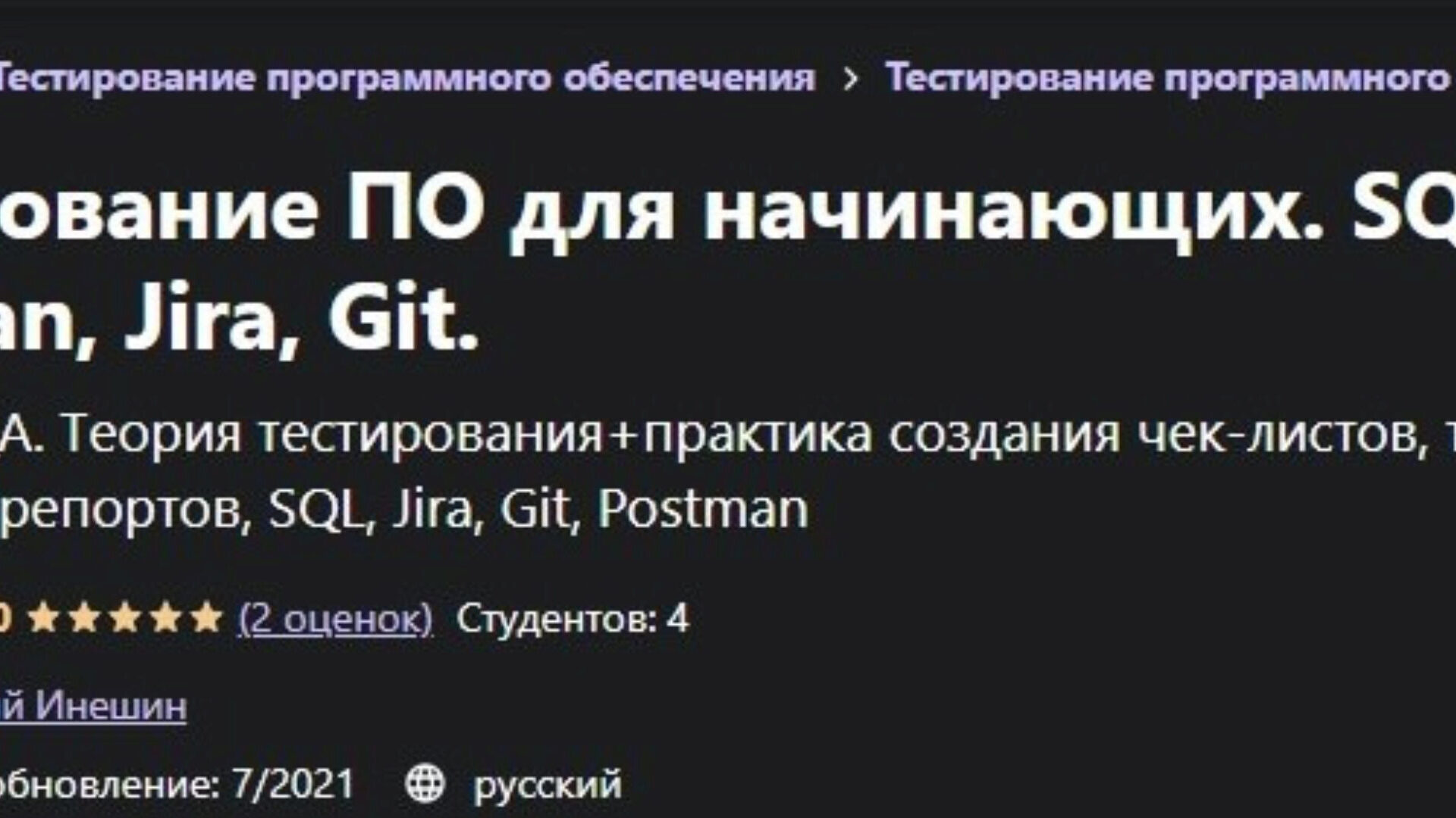 Дмитрий Инешин «Тестирование ПО для начинающих. SQL, Postman, Jira, Git (2021)» — Udemy