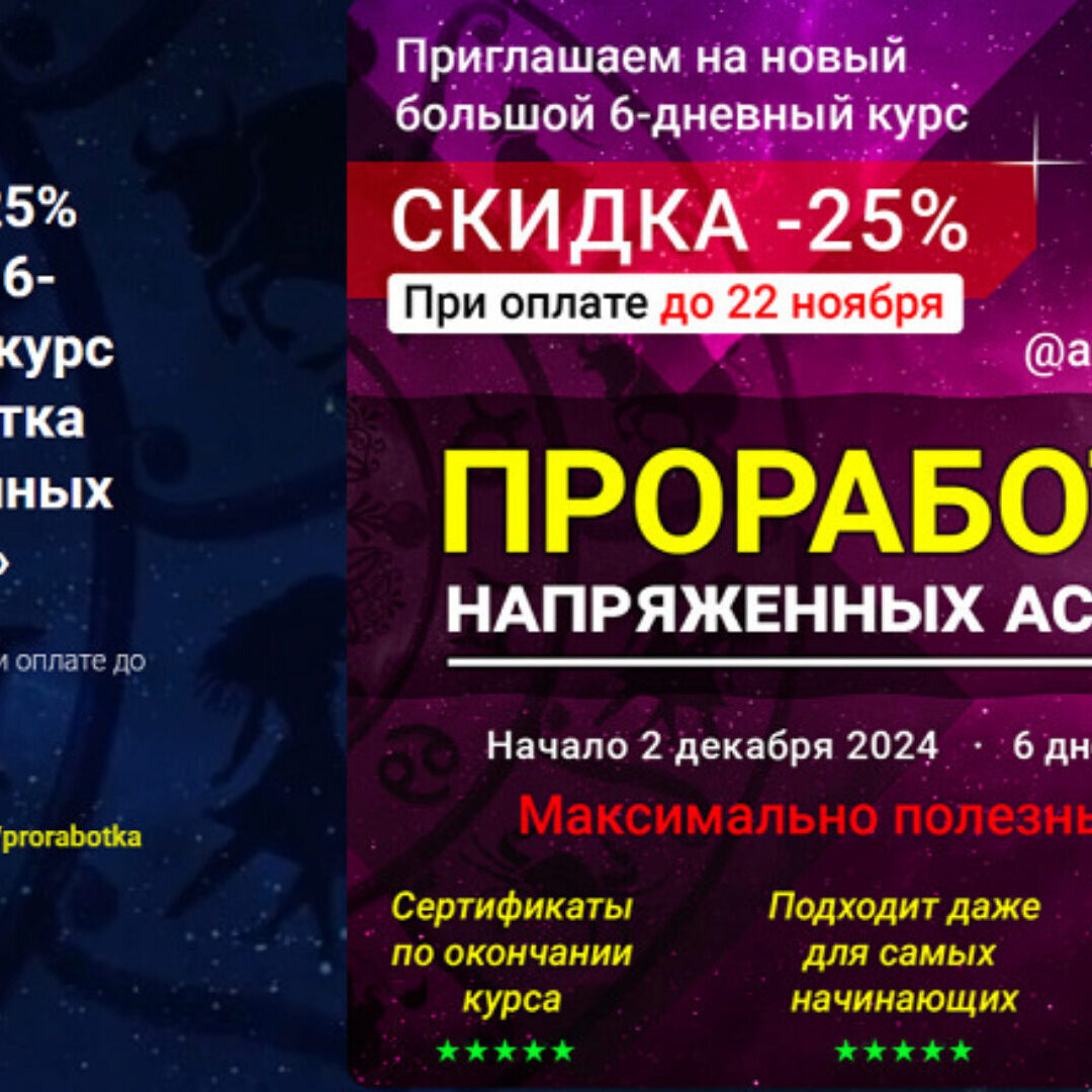 Этот большой 6-дневный курс раскроет вам секреты работы с напряженными аспектами и поможет превратить сложные стороны вашей натальной карты в источник силы и роста