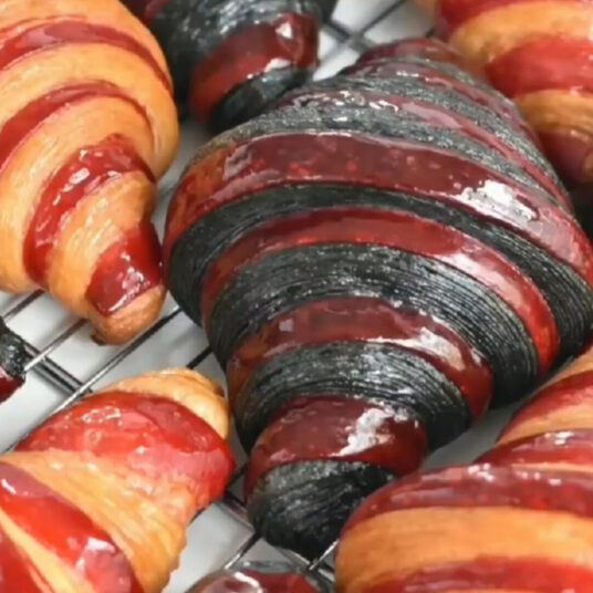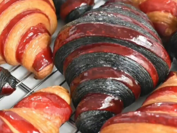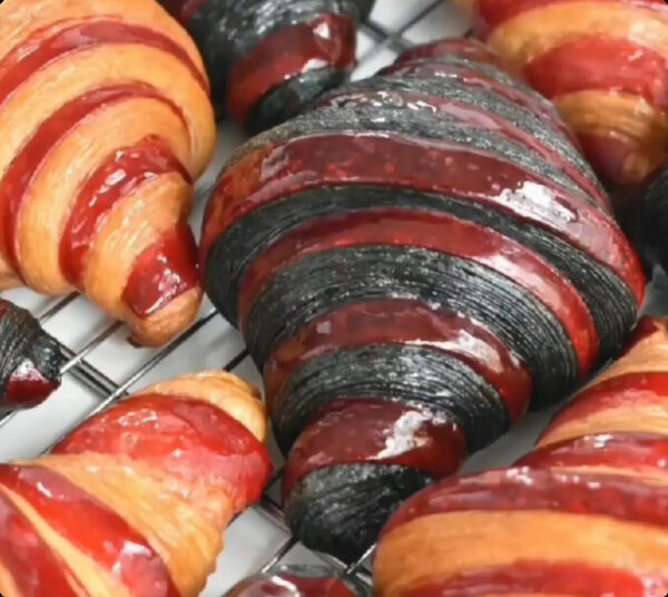 3. Круассан двухцветный с кремом из маскарадней и клубничной начинкой
