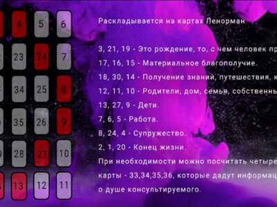 Курс «Большой расклад Ленорман» (коротко БР) – это массив знаний, являющихся высшим пилотажем работы с картами Ленорман. БР Ленорман привлекает любого прогнозиста своей информативностью и загадочностью. БР дает не просто прогноз, через БР мы получаем уникальные подробности, нюансы будущего, которые