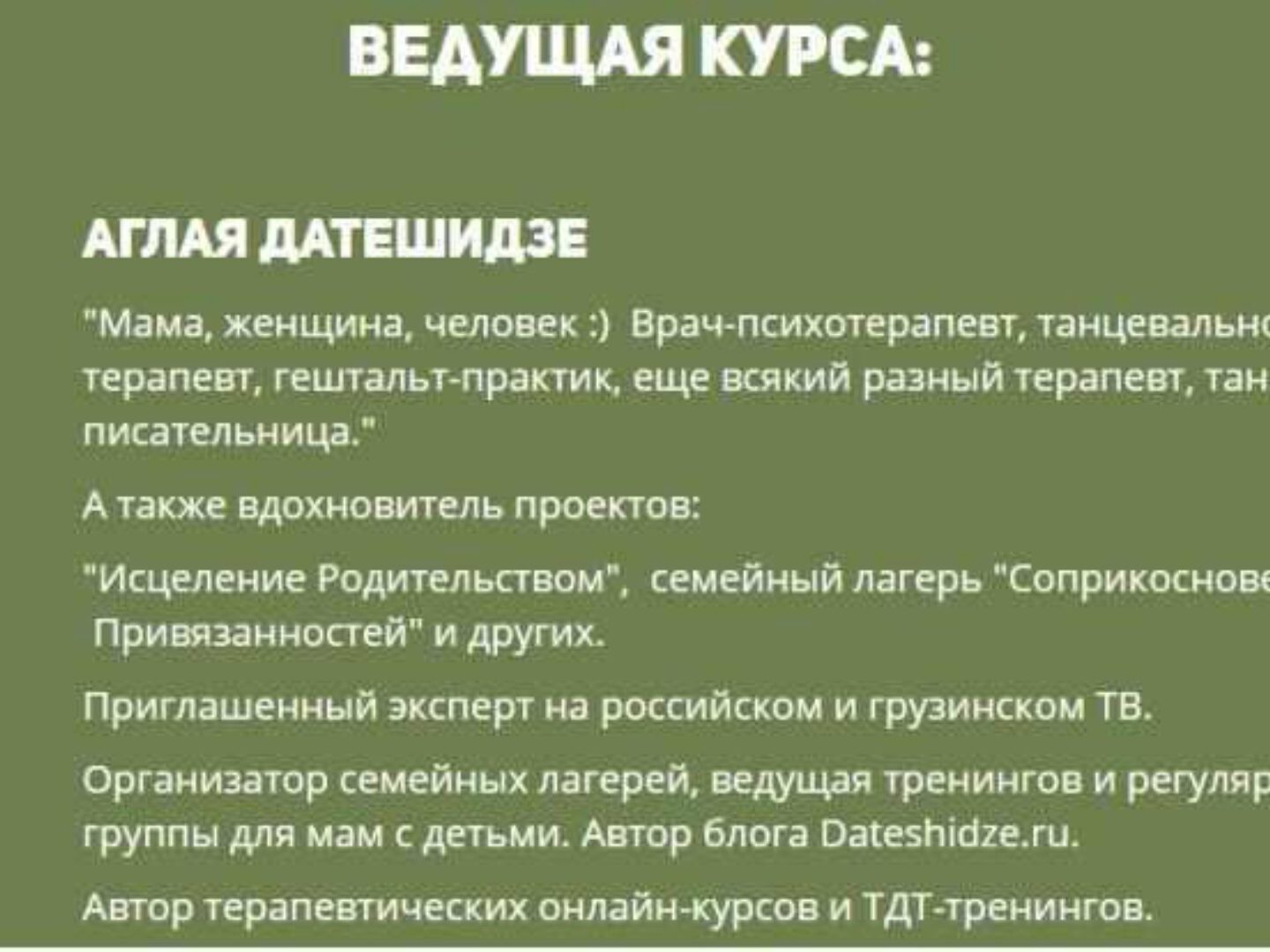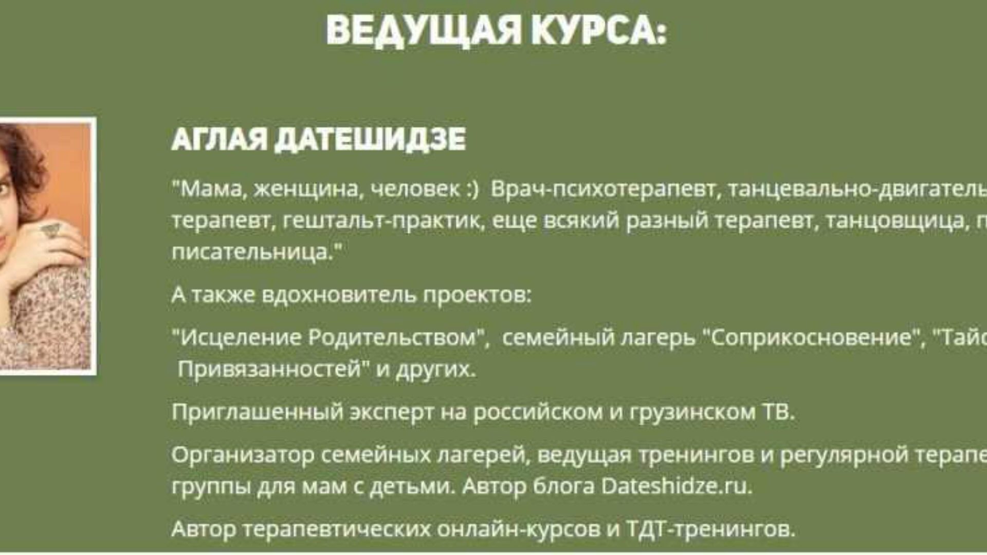 Купить другие курсы и тренинги от Аглая Датешидзе