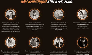 Этот курс является результатом моего 25-летнего практического опыта в области секса. Информация из этой программы работает безотказно, так как была неоднократно проверена на практике тысячами моих клиентов разного социального статуса, материального достатка, внешних данных и из разных стран мира.