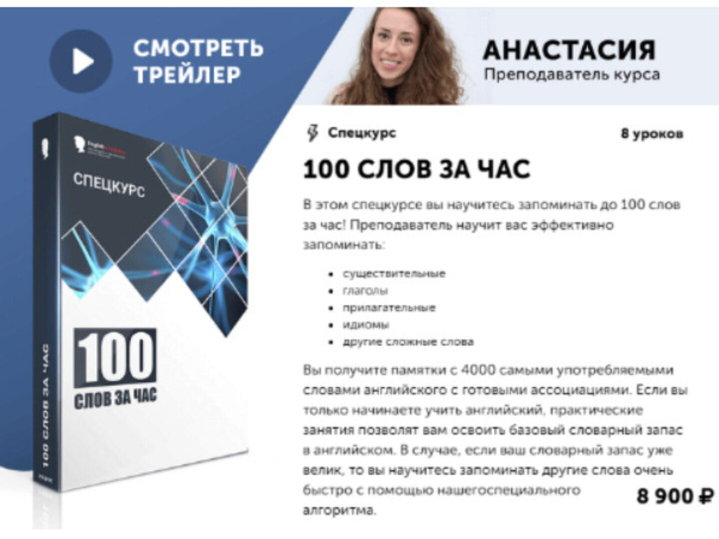 Отзывы о курсе Спецкурс «100 слов за час» от Алекса Рубанова