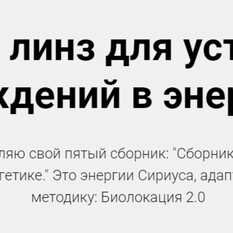 Биолокация 2.0. Энергии Сириуса - часть 1 70 линз для прокачки органов физиологических систем. Я подготовил сборник линз, который позволяет направить энергию Сириуса на необходимые органы и физиологические системы организма. Вместе со сборником Вы получаете подробное обучающее видео и проходите