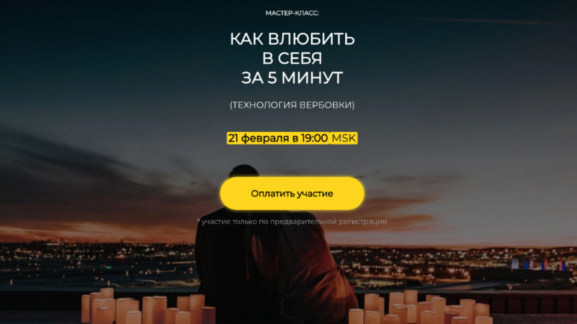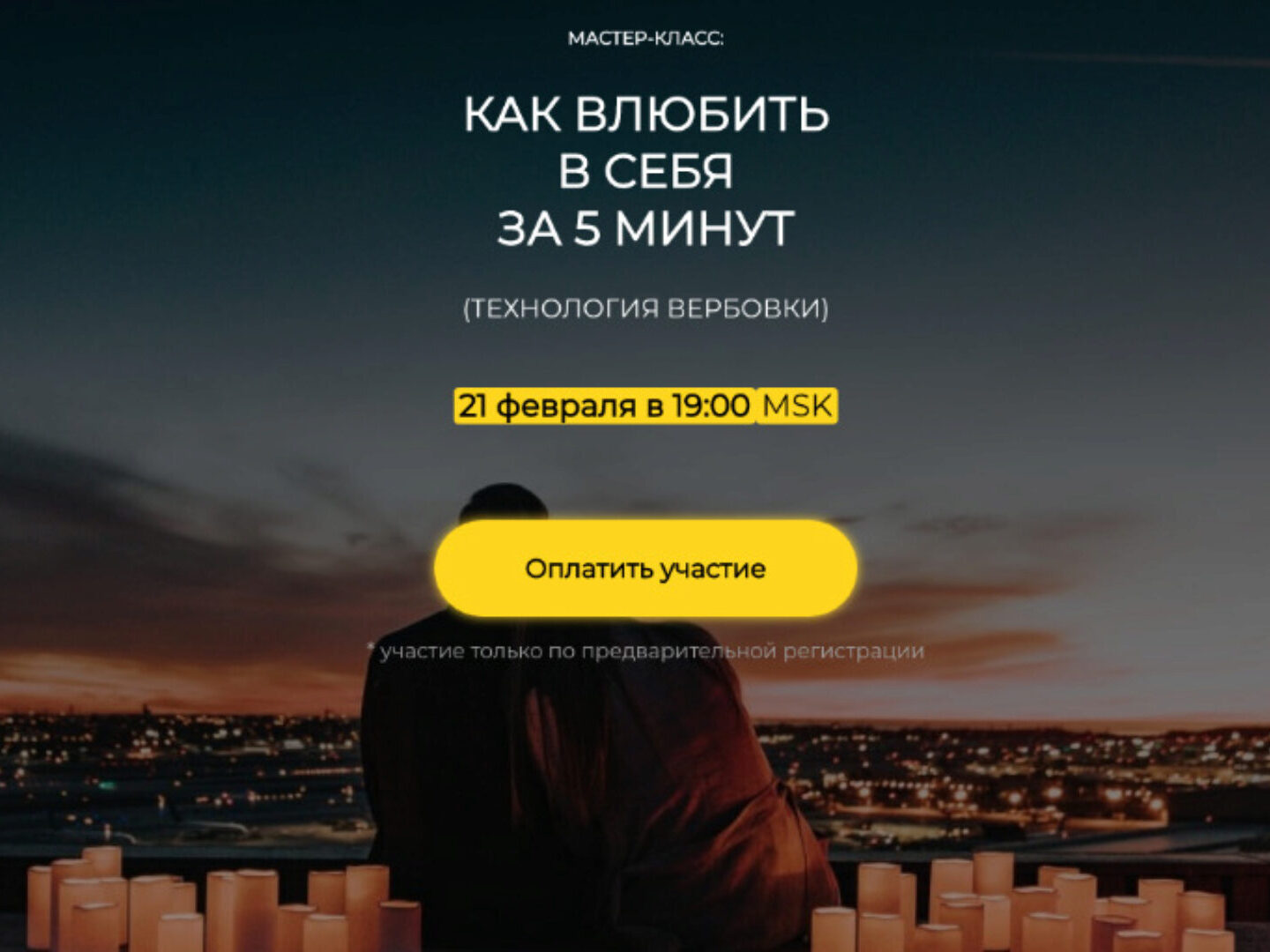 На семинаре вы узнаете Как стать магнитом для мужчин и привлечь к себе внимание заинтересовавшего мужчины Как сделать так, чтобы ваш мужчина считал вас Самой Лучшей Женщиной на свете Самый надежный способ покорить мужское сердце и удержать мужчину возле себя всю свою жизнь Что ценят мужчины дороже