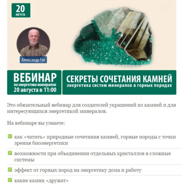 Описание Если вы интересуетесь минералами, стремитесь применять энергетику камней в повседневной жизни, хотите помогать своим близким с помощью самоцветов, тогда этот курс для вас! Мы изучаем энергетику минералов под руководством Мастера, говорящего о сложных вещах с юмором и простым языком. На