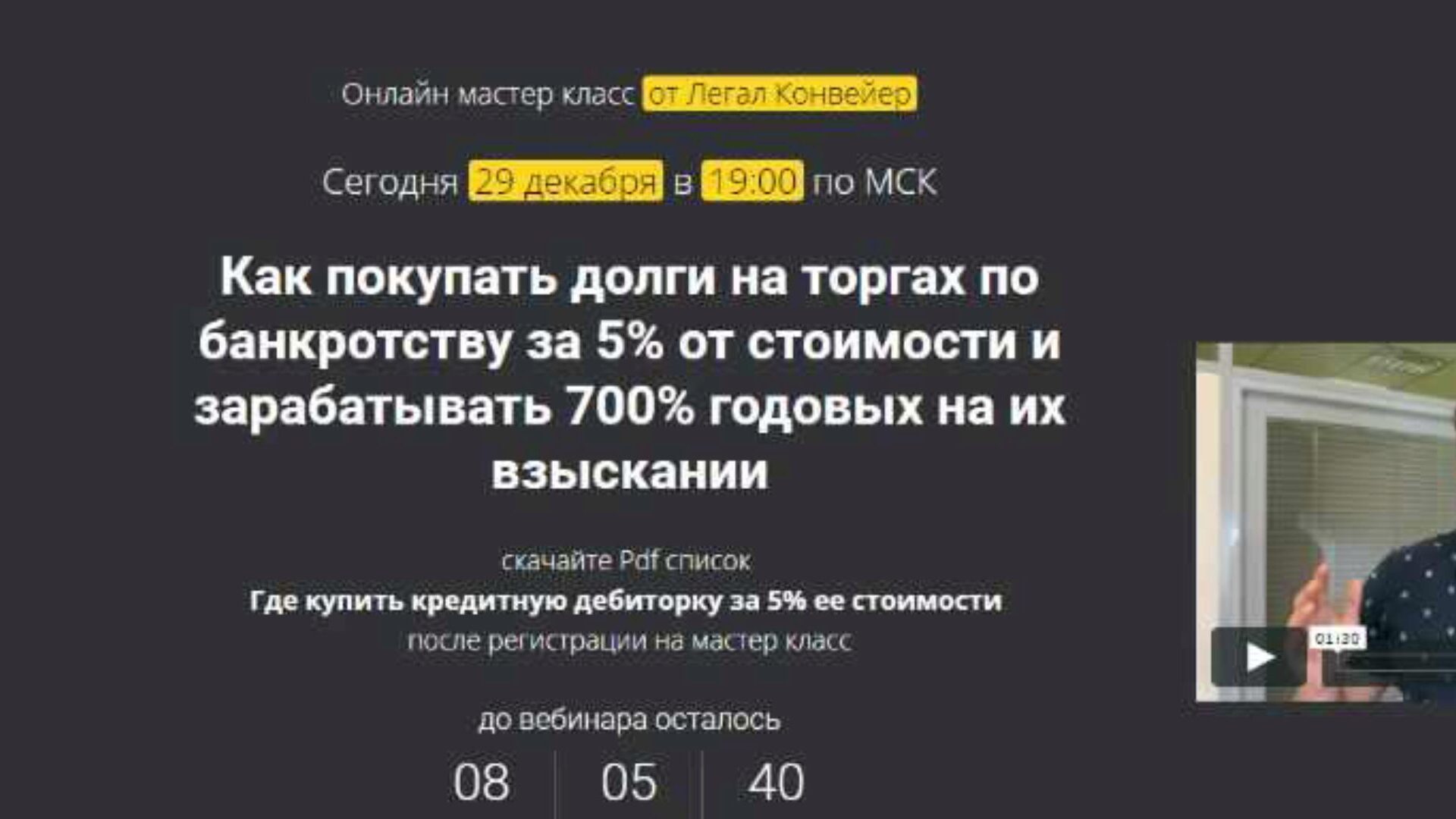 Интересно с первых минут, захватывающе как в кино, без воды и НЛП маркетинга, за 2-3 часа вы узнате всю правду о дебиторской задолженности на торгах по банкротству