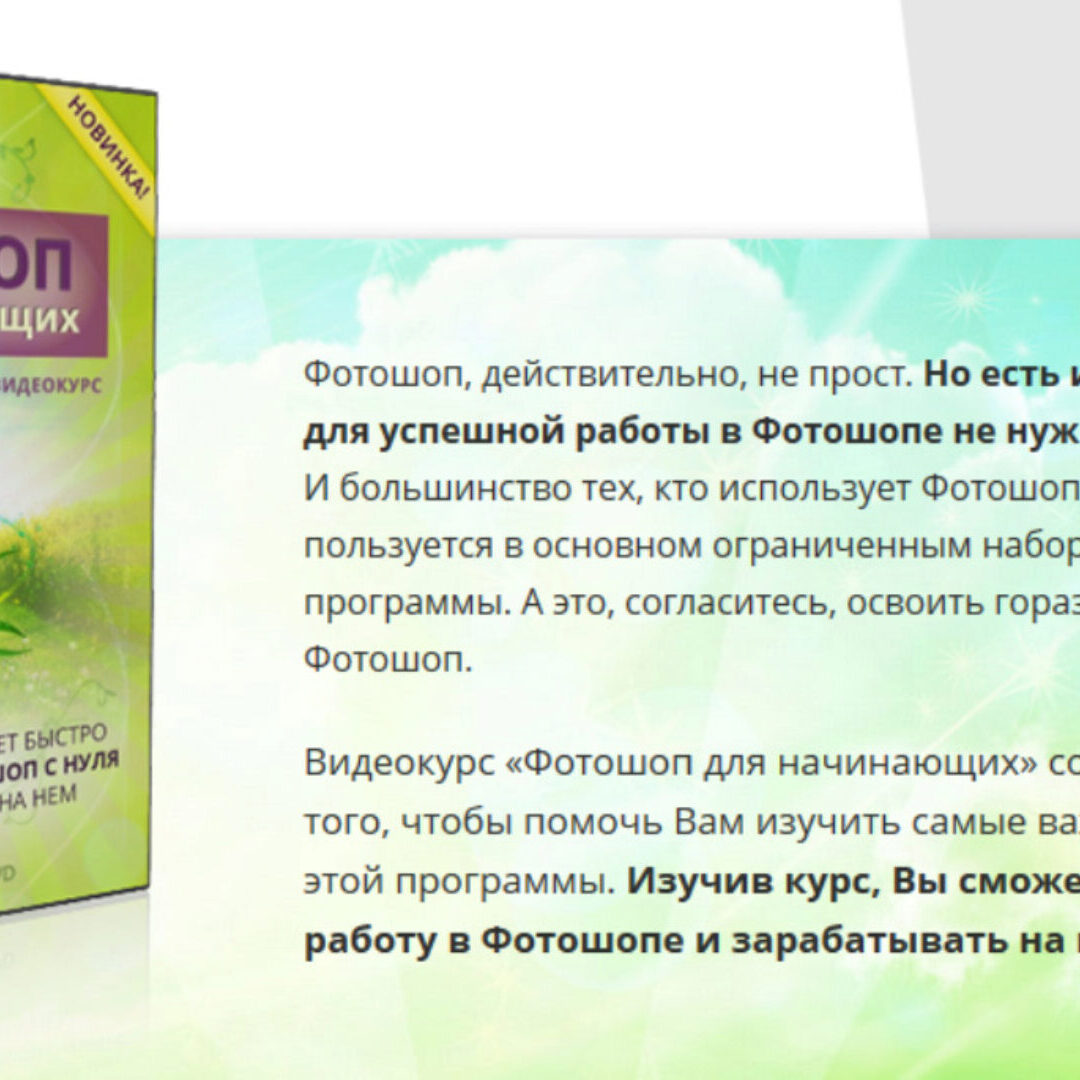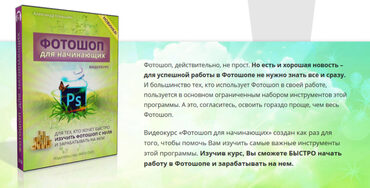 Видеокурс «Фотошоп для начинающих» создан как раз для того, чтобы помочь Вам изучить самые важные инструменты этой программы. Изучив курс, Вы сможете БЫСТРО начать работу в Фотошопе и зарабатывать на нем.