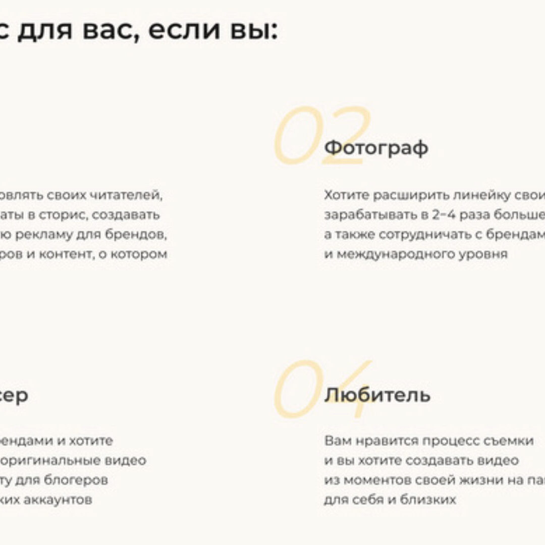 - Находить клиентов и бренды, с которыми тебе интересно сотрудничать