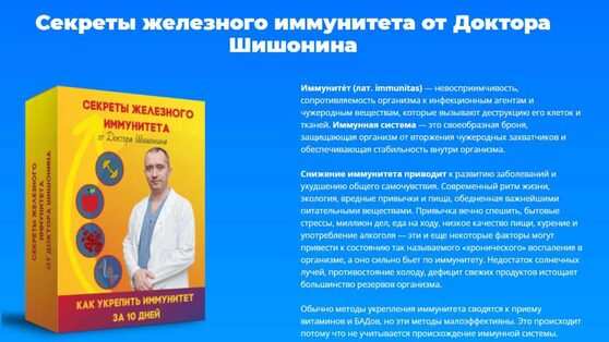 Теоретическая и практическая, которые являются единым целым методики доктора Шишонина. Вы сможете не только изучить и заняться укреплением иммунитета, но и четко поймете, как он работает, и какой результат Вы получите.