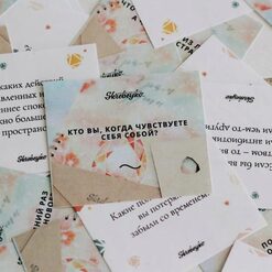 Это цифровой товар. Сто пятьдесят сильных открытых вопросов. В документе – десять страниц, на каждой – по пятнадцать вопросов. Скачайте файл, распечатайте его в ближайшей типографии на плотной бумаге и попросите разрезать на карточки. Ещё вариант – распечатать на клейкой бумаге – и получатся