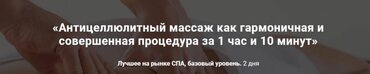 Полностью гармоничный и востребованный антицеллюлитный массаж всего тела и проблемных зон с обертыванием всего за 1 час и 10 минут! Все традиции СПА! Грамотная и отлично продаваемая процедура