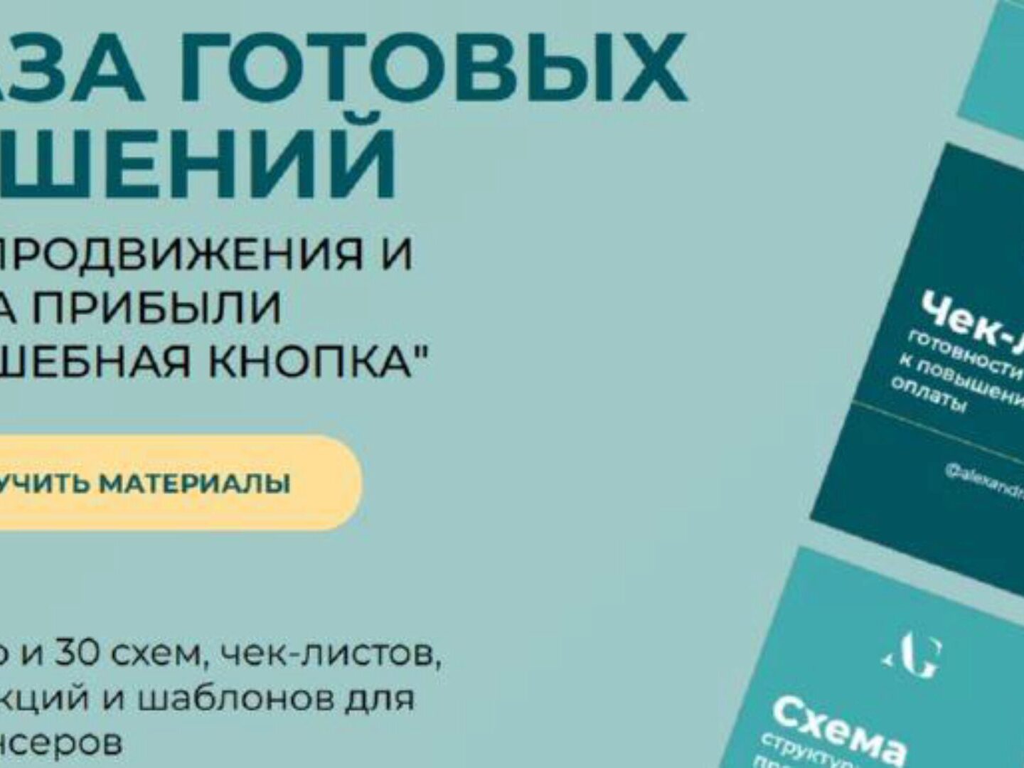 27 готовых шаблонов, схем, таблиц и гайдов для предпринимателей Доступ к уникальным работающим материалам, разработанными для предпринимателей Доказавшие свою эффективность на практике уже более чем в 300 нишах Забирайте пакет готовых решений для бизнеса навсегда! Внедряйте и получайте результаты