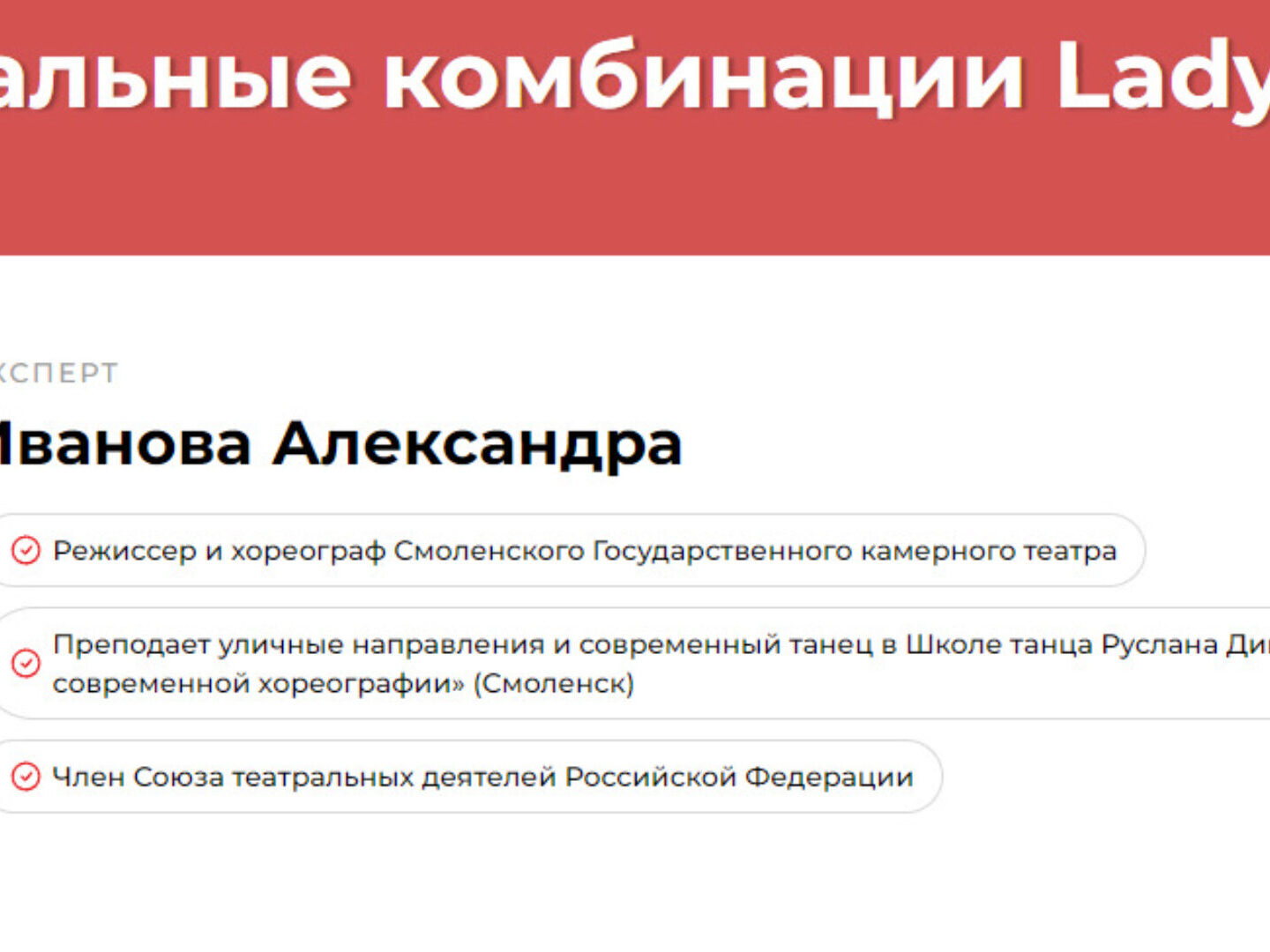 Отзывы о курсе «Танцевальные комбинации Lady dance» от Александры Ивановой