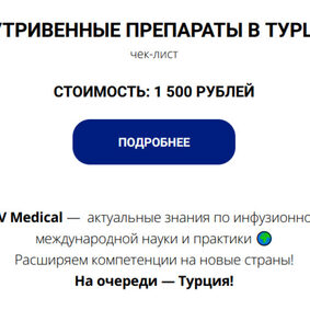 Александра Медзиновская «Чек-лист Внутривенные препараты в Турции» — IV Medical