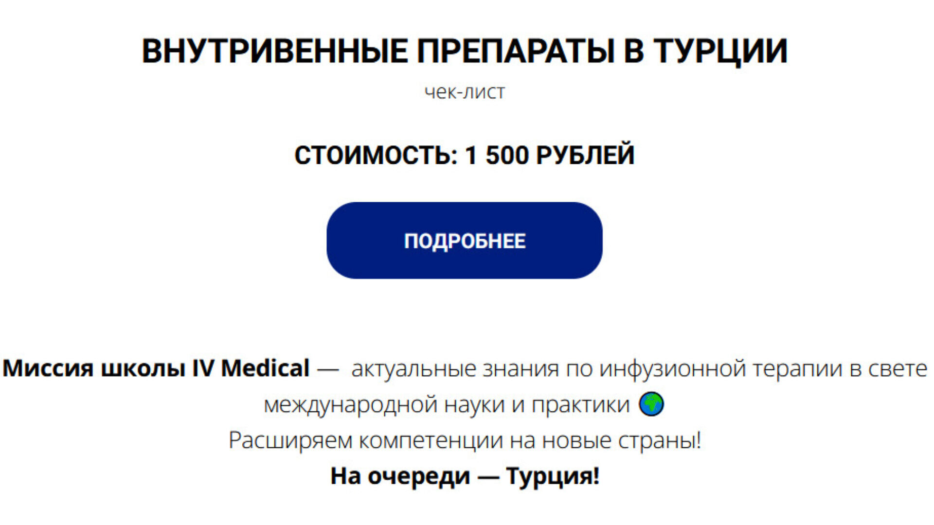 Отзывы о курсе «Чек-лист Внутривенные препараты в Турции» от Александры Медзиновской