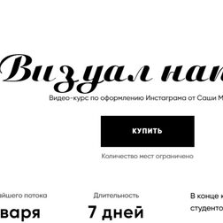 Визуал наповал Видео-курс по оформлению Инстаграма от Саши Митрошиной Старт ближайшего потока- 10 апреля Длительность: 1 месяц #STAYHOME Научим делать классный визуал в домашних условиях Преимущества курса:-Короткие видео-лекции (от 5 до 20 минут), которые можно смотреть за завтраком Задания,