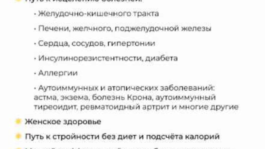 Эта программа для вас, если уже питаетесь правильно, но не достигли желаемого результата хотите жить, а не лечиться осознаете самоценность и готовы заботиться о своём теле хотите видеть красивое отражение в зеркале желаете иметь достаточно энергии для реализации всех своих планов хотите чувствовать