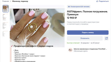 Богатая женщина хочет качественный маникюр за 15–20 минут, ведь время – деньги, и она готова за это платить. Ещё она выбирает френч – бессмертную классику, которую так любят роскошные женщины. Освойте максимально универсальную технику маникюра, которая подходит абсолютно всем ручкам, а по времени
