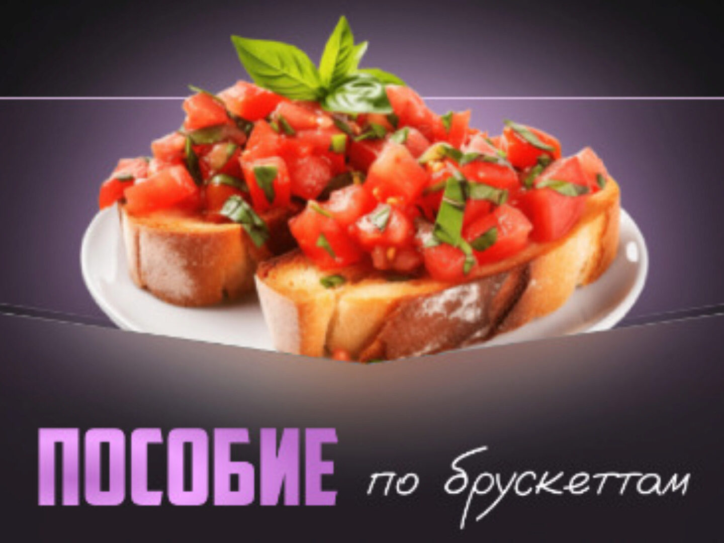 Руководство по приготовлению самых вкусных брускетт С ВИДЕО-уроками и полным описанием Содержание: - брускетта с шейкой - брускетта «Цезарь» - брускетта с печёными черри - брускетта с печёным перцем - брускетта с соусом дор-блю и хамоном - брускетта гуакомолле и форелью - брускетта с креветками и