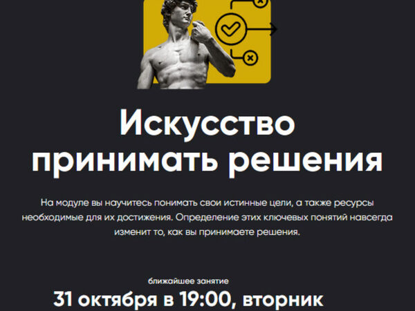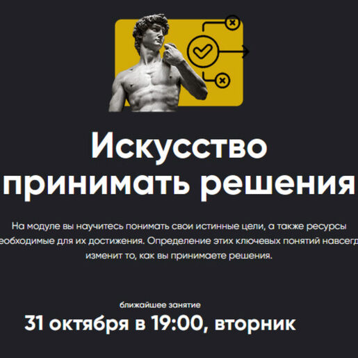 Модуль из пяти занятий, посвящённый обучению искусству сколь ценному, столь и редко встречающемуся — искусству принимать решения. Я закончил командное военное училище: т.е. учебное заведение, где принимать и реализовывать решения является основным видом, способом и содержанием обучения. Но даже