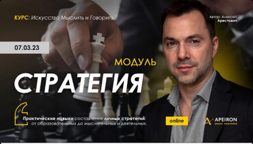 Модуль научит вас искусству стратегии: как планировать и достигать поставленных целей в условиях неопределённости и ограниченных ресурсов. На протяжении пяти занятий Алексей Арестович научит вас мастерству Стратегии: как планировать и достигать поставленных целей в условиях неопределённости и