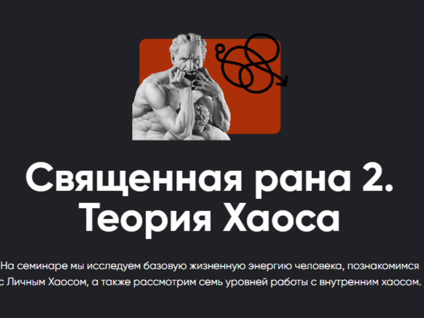 Это один из базовых семинаров для понимания человека и его места в мире. На семинаре вы узнаете о сути Священной раны, законах этого пути, сущности каждого этапа эволюционной лестницы, правилах движения и перехода. У каждого есть своя уникальная Ахиллесова пята. В начале пути она кажется слабостью