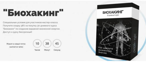 21 спикер и 5 хэдлайнеров Тариф «Биохакер космос» БИОХАКИНГ Метод превентивной медицины, который улучшает все жизненные показатели, делает вас здоровее и продлевает жизнь. Это системный подход к вашему здоровью! У вас нет времени разбираться во множестве теорий по сохранению молодости? Научитесь