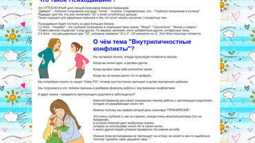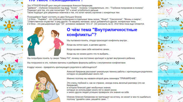 Программа онлайн-тренинга: Длительность: 2 недели Вводная трансляция от автора 2 урока в неделю в записи с проверкой ДЗ (чт-пт) Вебинар с ответами на вопросы каждую неделю (ср) Тематические блоки курса: Вводный урок (29 июля в 19:00 по МСК): «Что такое чувство вины? Откуда оно берется и на что оно