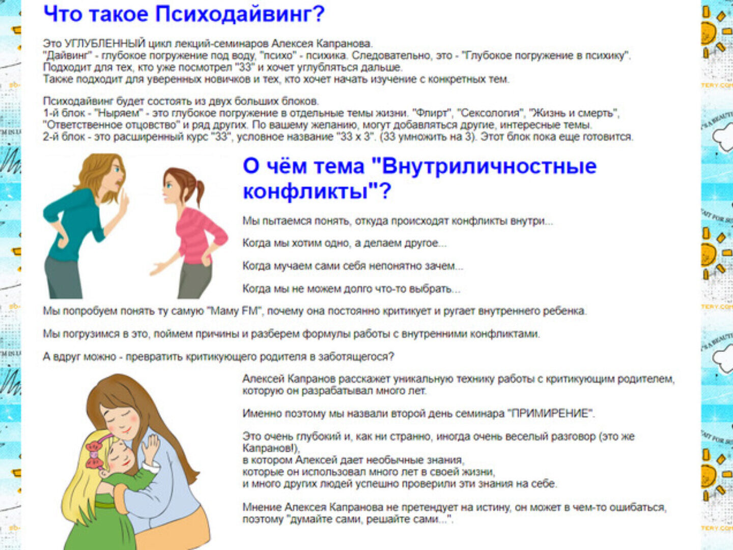 Отзывы о курсе Психодайвинг. Внутриличностные конфликты. Тариф «Сразу две лекции» от Алексея Капранова