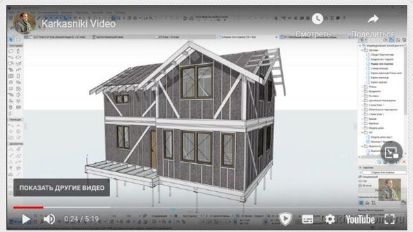 Вы научитесь моделировать все основные части каркасного дома (ростверк, перекрытия, каркасы стен, обвязку стен, стропильную систему).