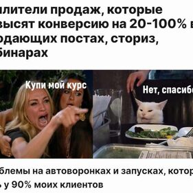 Тратишь деньги на рекламу, а люди не вовлекаются в прогревы и автоворонки и не покупают. Конверсия в продажу низкая.