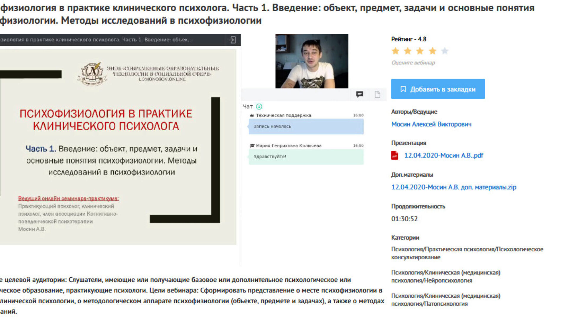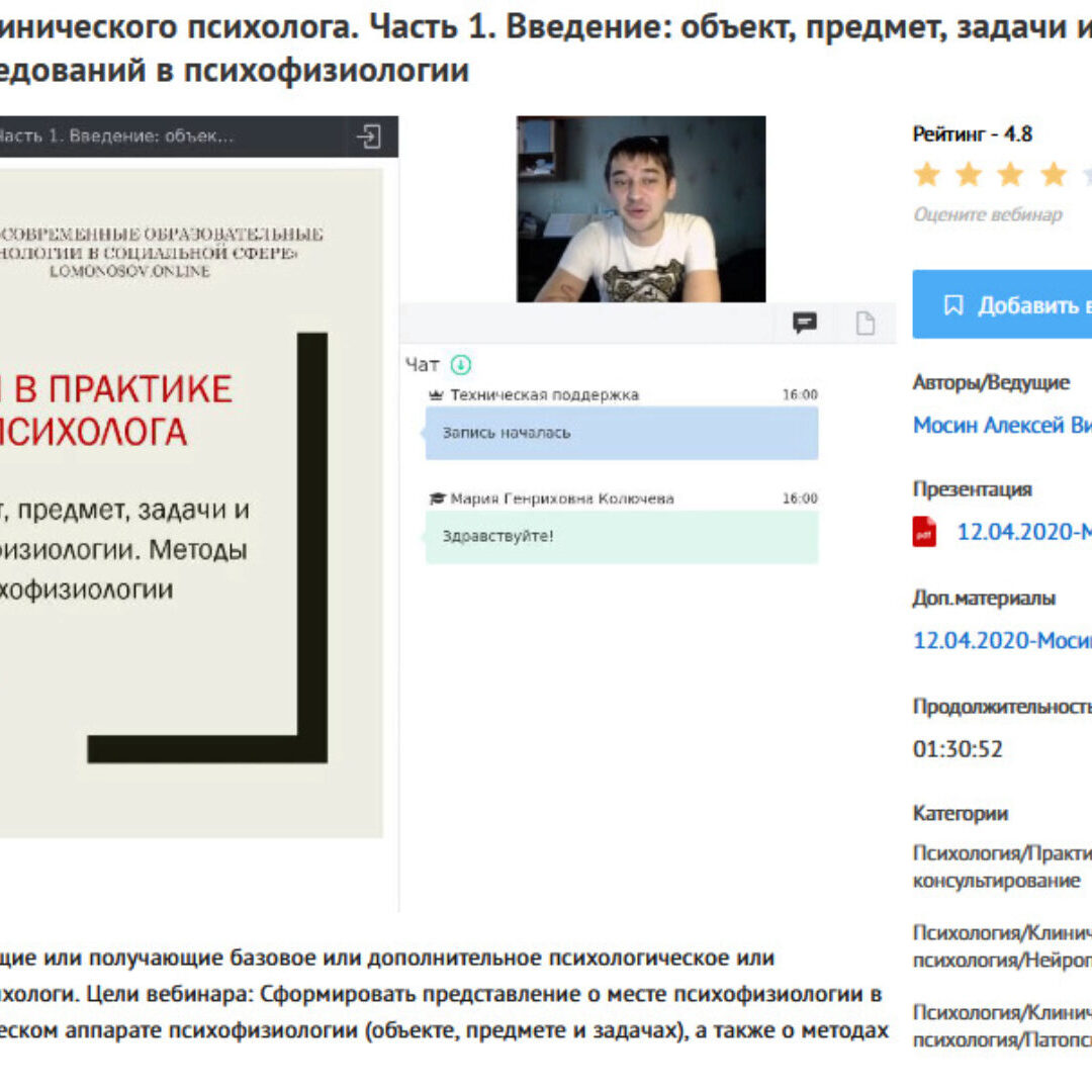 Алексей Мосин Вебинары «Психофизиология в практике клинического психолога» — УИПКиП