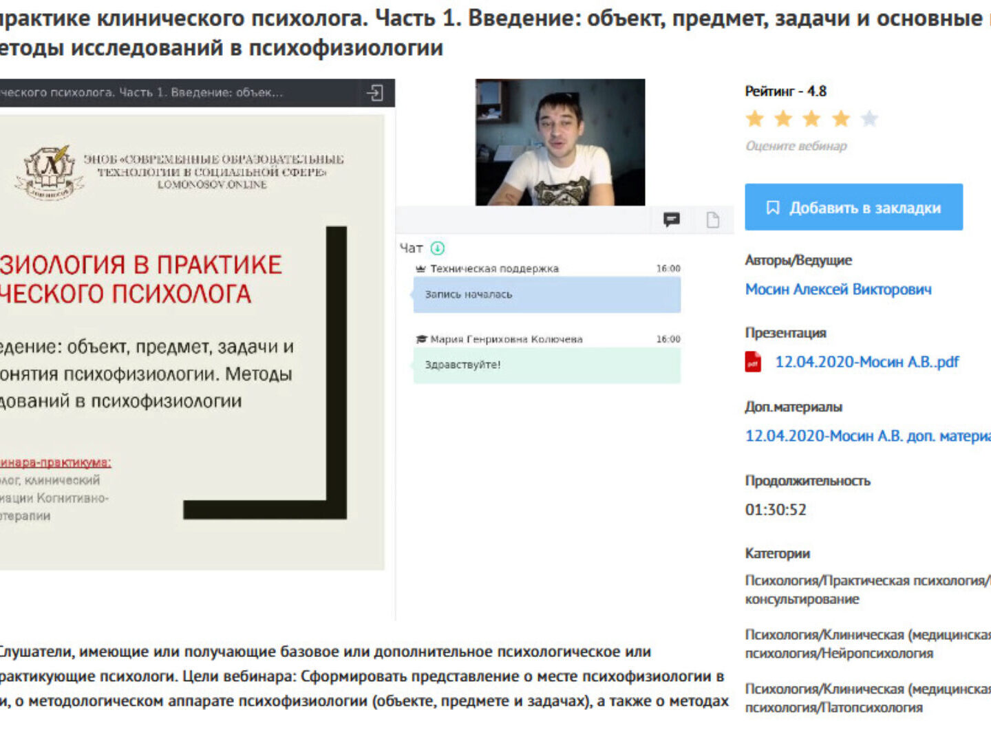 Отзывы о курсе Вебинары «Психофизиология в практике клинического психолога» от Алексея Мосина