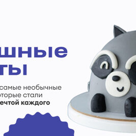 - Декор торта «Енот». Форма «Приподнятая полусфера». Покрытие крем-ганаш. Декорирование пластичным шоколадом