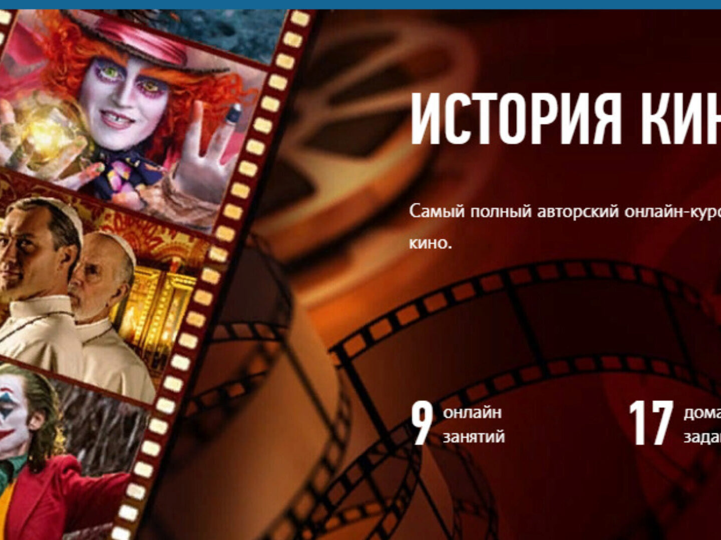 Захватывающий интерактивный онлайн-курс, посвященный прикладной истории мирового кино, и нацеленный на применение его достижений и особенностей в современной видеографии и личном творчестве.