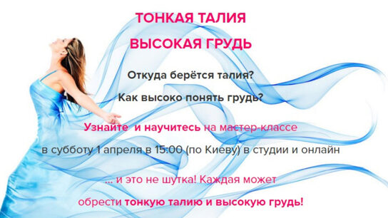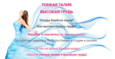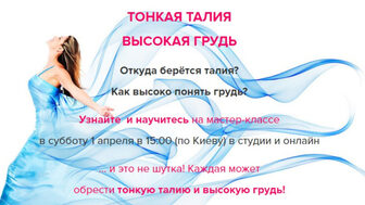 На этом мастер-классе Вы получите ответы на эти и многие другие вопросы. Вы увидите взаимосвязи в теле, ощутите, как изменение привычного положения тела на правильное и естественное вызывает изменение состояния. Научитесь простым и незаметным движениям, которые помогут обрести высокую грудь и тонкую талию.