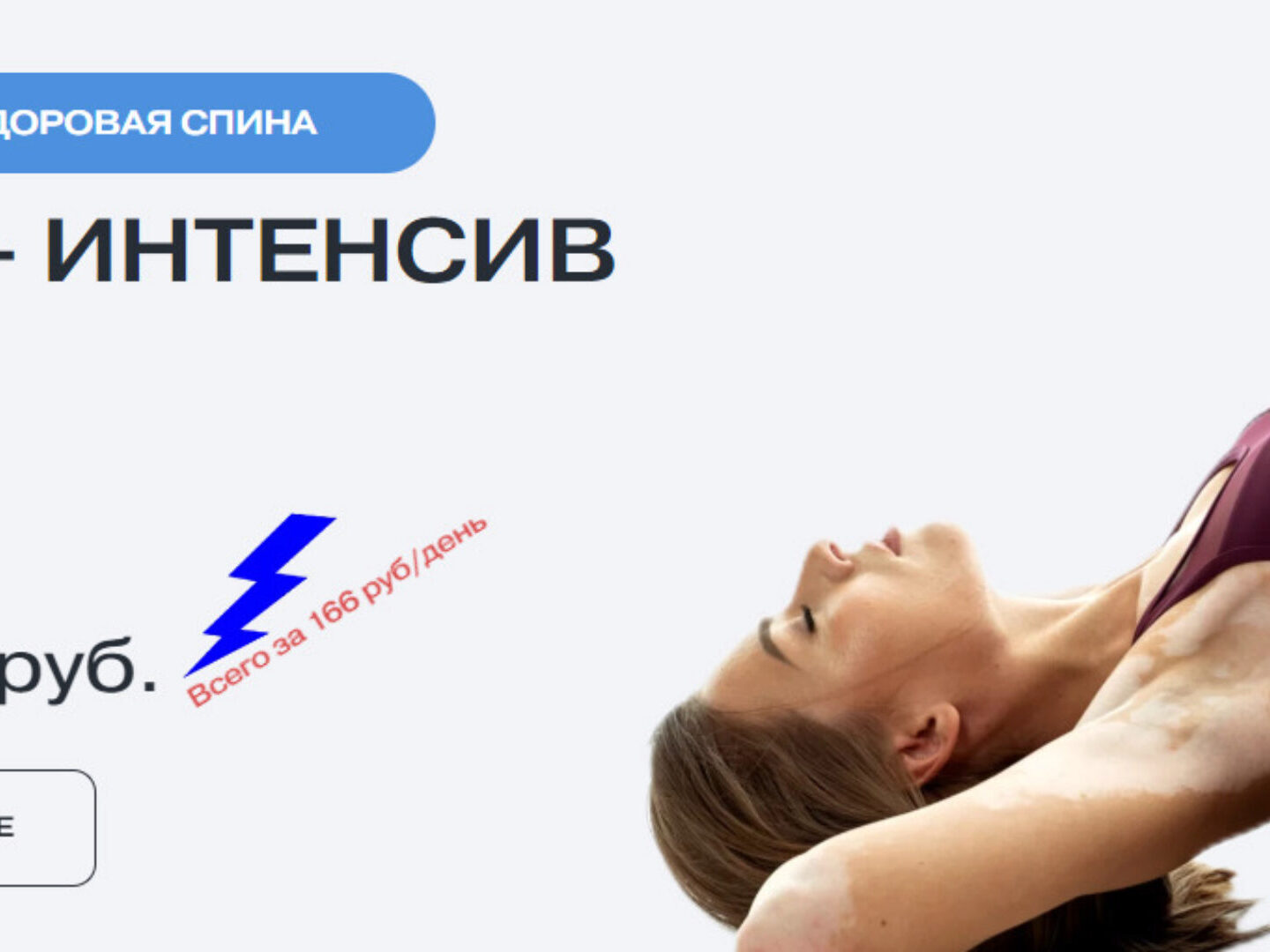 Спина, колени, стопы Интенсив - это идеальный вариант, чтобы начать тренироваться НЕДОРОГО из-за 10-дневного доступа, без переносов и продлений ЭФФЕКТИВНО неделя акцентированной работы с телом: 6 тренировок + 1 прямой эфир БЫСТРО чтобы не откладывать, а сразу начинать тренироваться УДОБНО