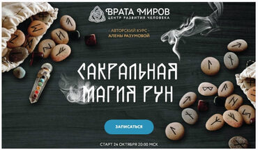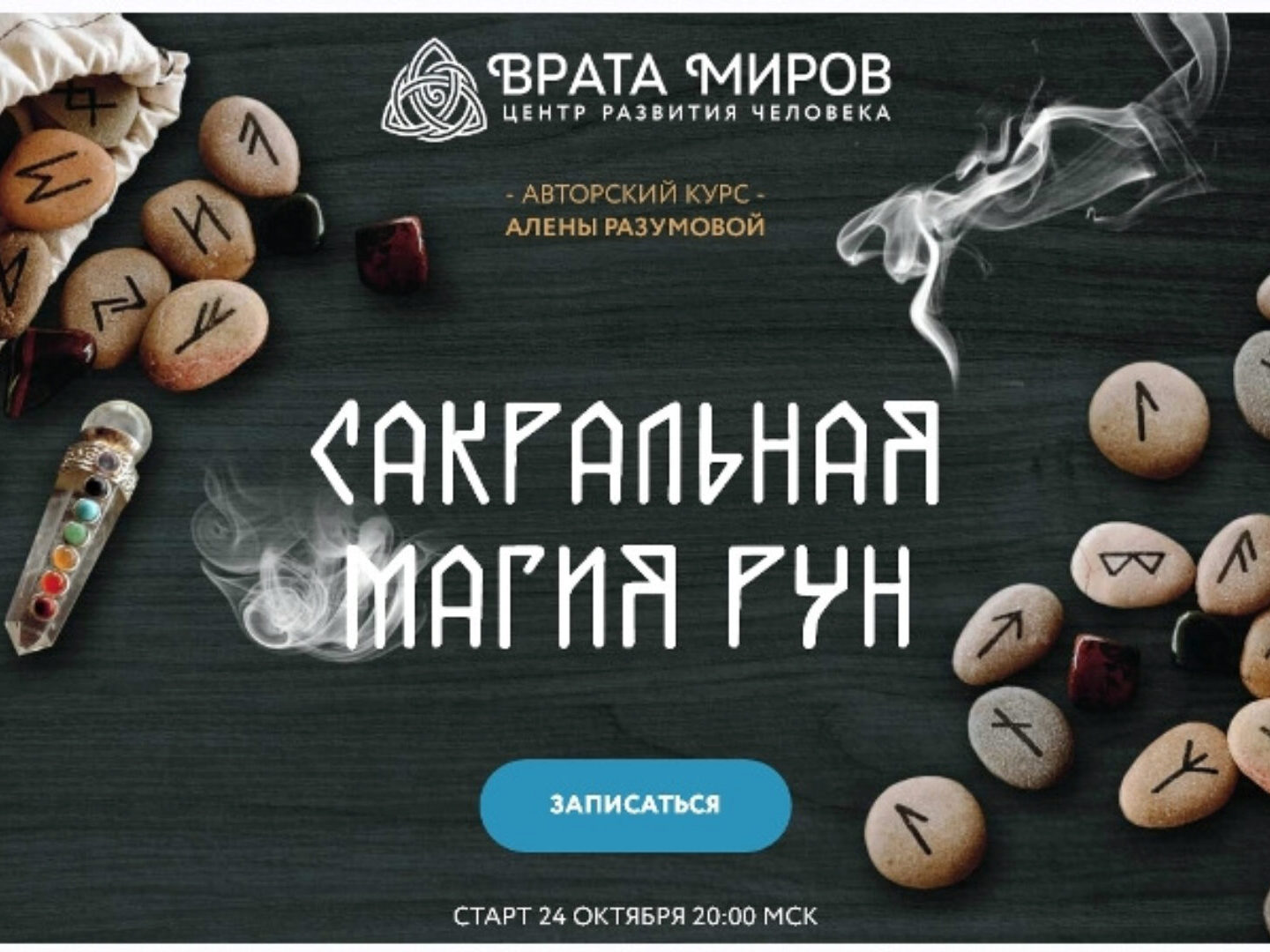 Авторский курс Алены Разумовой Сакральная магия рун РУНЫ — это адаптированные принципы мироздания, которые дают нам возможность активировать и нарабатывать в себе те или иные качества, а также осуществлять магическое взаимодействие с реальностью. Каждая Руна проявляет в человеке некую силу или