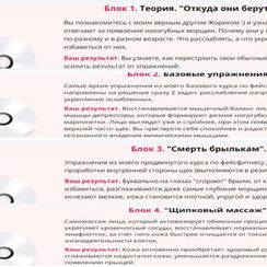 За 4 урока вы: Поймете, как тейпы помогают вернуть молодость и красоту: - заменяют ботокс в борьбе с морщинами; - создают эффект стойкого лифтинга при провисании тканей; - избавляют от лишних килограммов, растяжек и целлюлита. Воспользуетесь рабочей схемой тейпирования, не выходя из дома и увидите