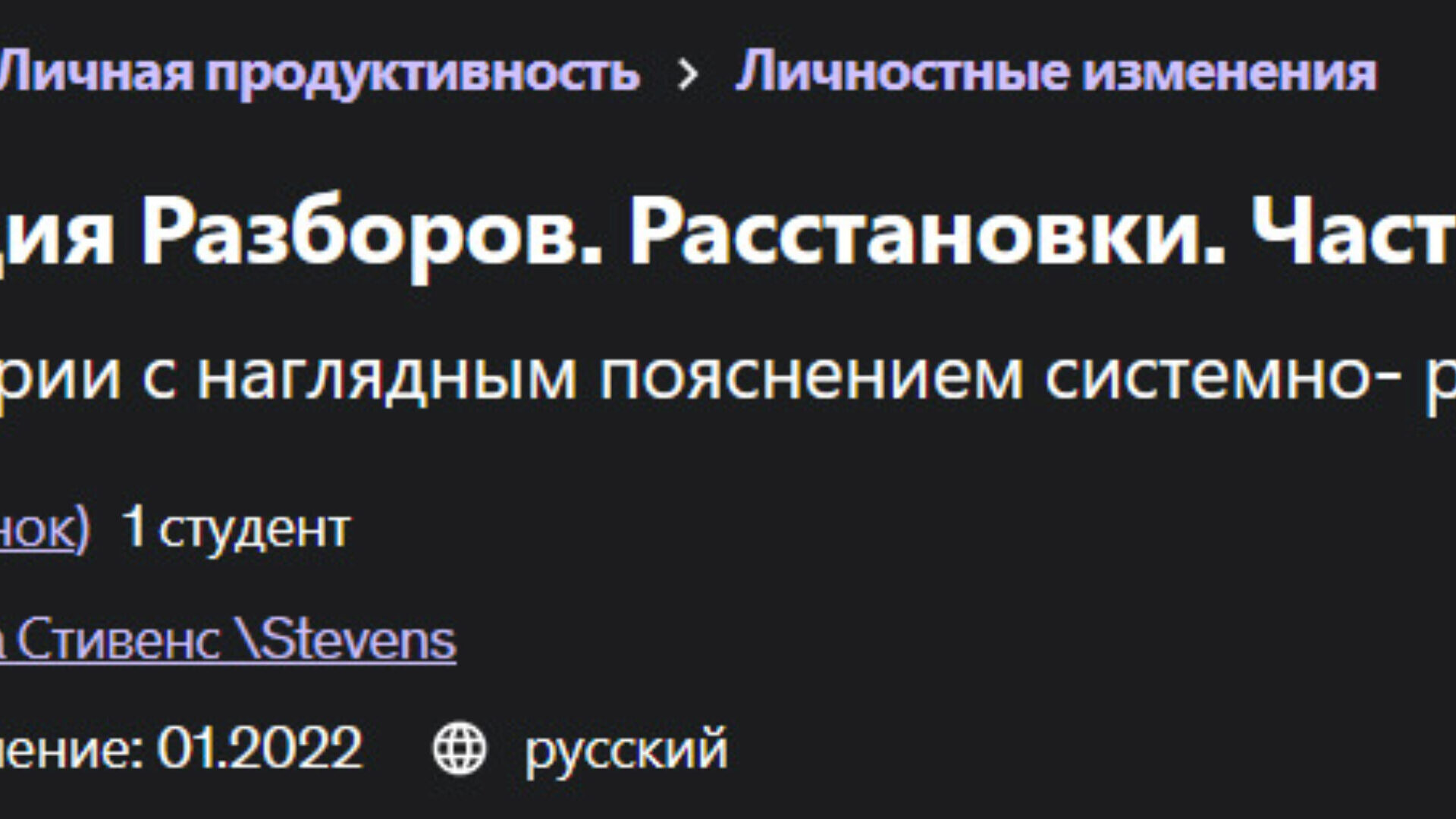 Алена Стивенс, Alyona Stevens «Энциклопедия Разборов. Расстановки. Часть 1» — Udemy