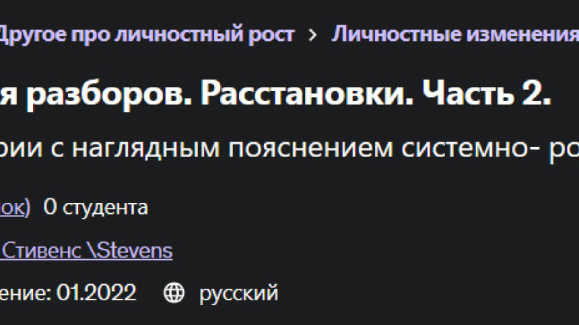 Алена Стивенс, Alyona Stevens «Энциклопедия Разборов. Расстановки. Часть 2» — Udemy