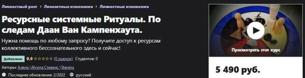 Алена Стивенс «Ресурсные системные Ритуалы. По следам Даан Ван Кампенхаута» — Udemy