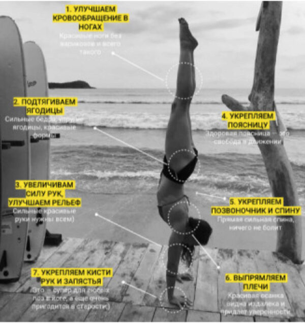 Что ты сможешь помимо стойки на руках? Научишься отжиматься без колен Научишься делать спичаг (плавный подъем ног в стойку на руках) Научишься отжиматься в стойке на руках Научишься заходить в мост Научишься делать переворот назад от стены Сделаешь складку (коснешься лбом колен с прямыми ногами)