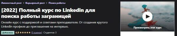Отзывы о курсе [Udemy] Полный курс по Linkedin для поиска работы заграницей (Alex Kapitanov)