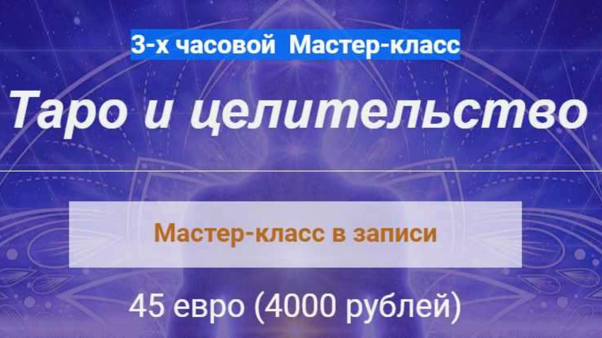 Уникальный онлайн курс 5 уроков, которые позволят с помощью Таро противостоять негативным энергиям Программа курса: Диагностика и ритуалы Диагностика порчей Простые и быстрые методы снятия Черная рулетка Диагностика порчей по сферам жизни 5 методов очищения и возврата зла в источник Ритуал