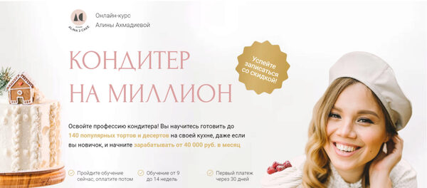 Онлайн-курс «Кондитер на миллион» Рекомендуем для Домашних Кондитеров! Вы сможете готовить больше 110 тортов и десертов для себя и на продажу, выйти из рутины «работа-быт-заказы» и начать стабильно зарабатывать на кондитерском деле. И станете Кондитером-профессионалом« Продолжительность: 12
