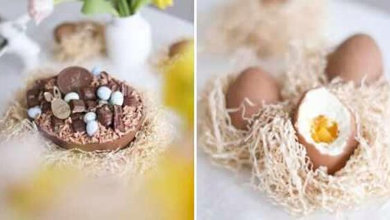 Сахарная глазурь, которая не трескается, не липнет и не сыпется при нарезании, ее можно окрасить в любой цвет. Гнездышки из бисквита-мха и сахарных яиц - Паcха ванильная